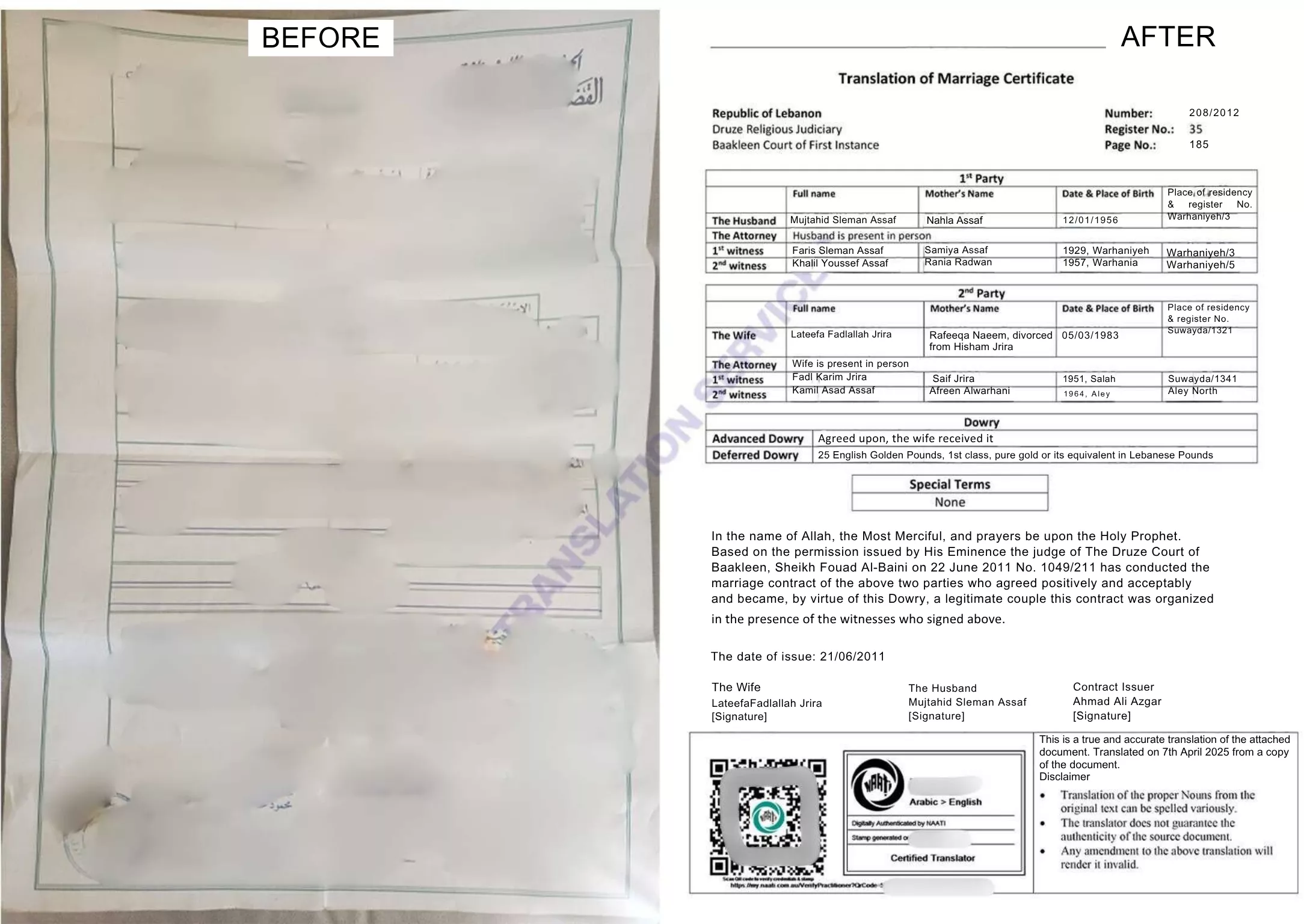 The final translation comes with a certificate of accuracy. So, if you are looking for Arabic to English translation services to help you with Arabic documents, give us a call without a second thought.