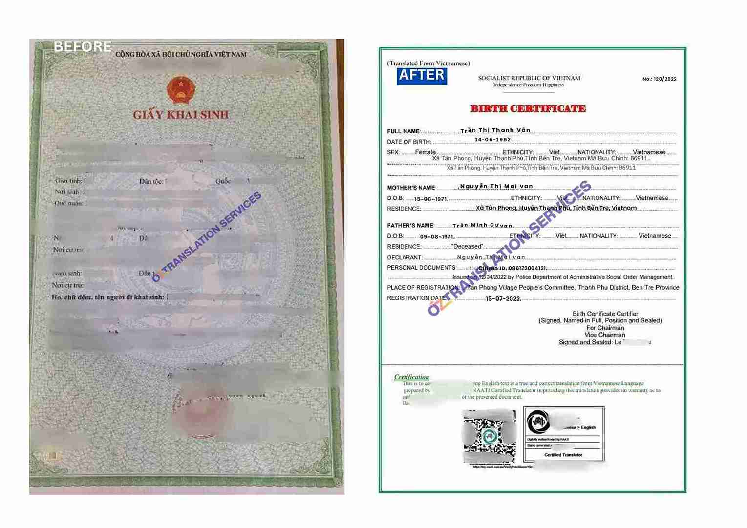 Using a certified translator ensures the document meets the high standards required for Australian immigration and avoids processing delays.